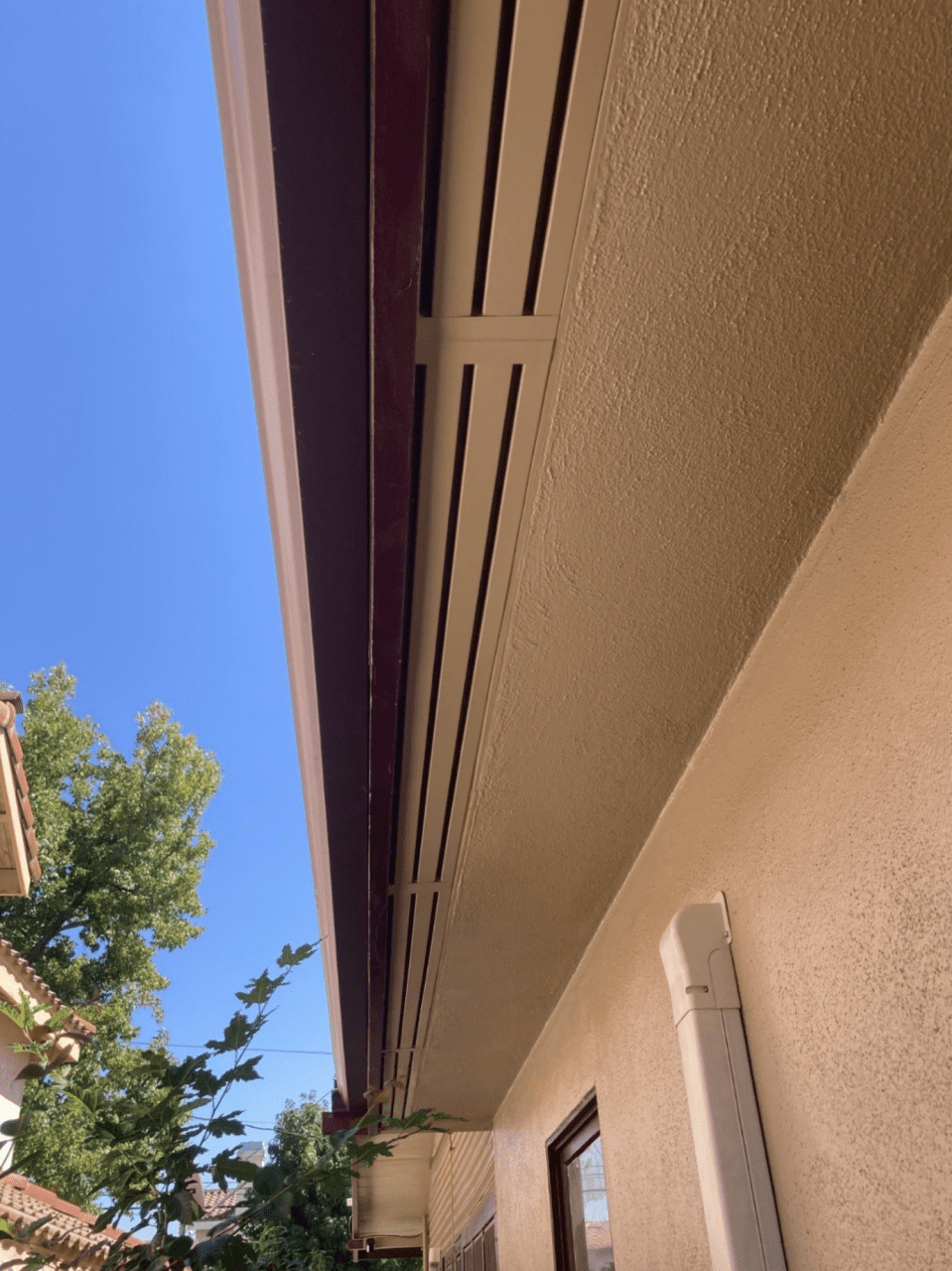 A soffit is the finished underside of a roof’s overhang, enclosed with materials like wood, vinyl, fiber cement or metal to create a clean, protected surface. It hides the structural elements of the eave while allowing controlled ventilation through vents or perforations.